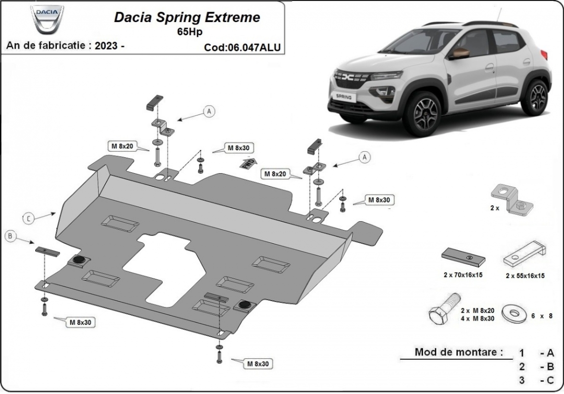 Piastra paramotore di Alluminio Dacia Spring Extreme (2023-2026)