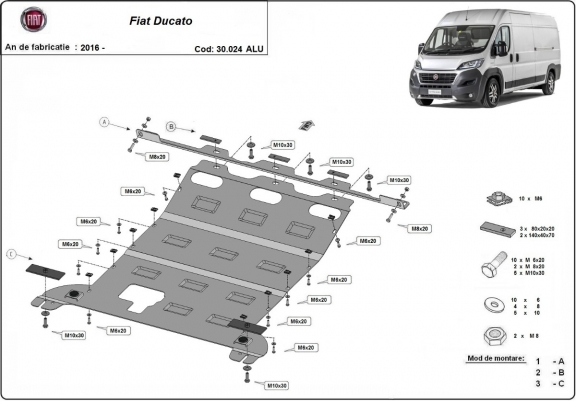 Piastra paramotore di alluminio Fiat Ducato (2016-2026)