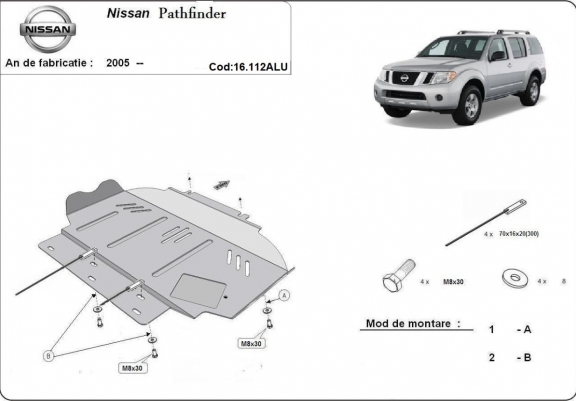 La piastra paramotore di Alluminio è nuova e si adatta perfettamente a tutte le versioni di Nissan Pathfinder prodotte tra il 2005 e il 2026. É fatto di lamiera d'Alluminio di 4mm. Gli scudi sono in alluminio, ma i supporti di fissaggio sono in acciaio. Bulloni, dadi, rondelle e tutti gli accessori allegati Ogni piastra è resistente alla corrosione ed è ricoperto di vernice in polvere. Le piastre di protezione del motore sono attrezzati di coppie saldate per la miglior resistenza alle forze exteriori. |