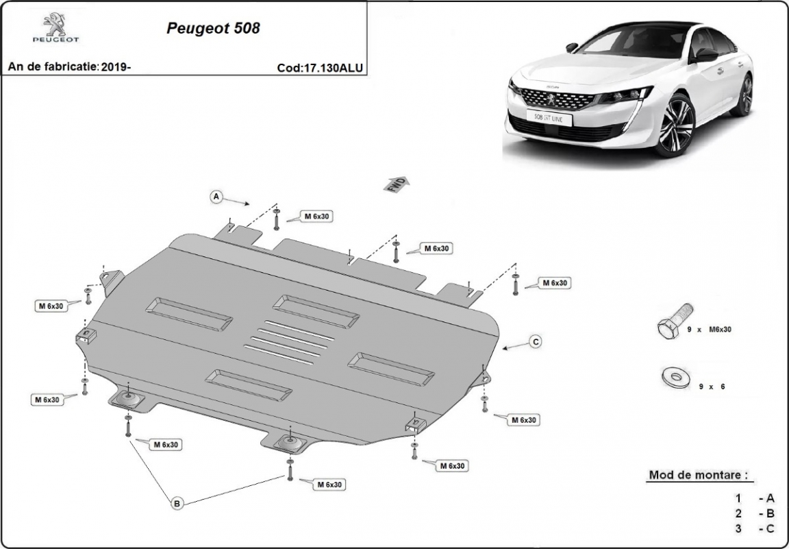 Piastra paramotore di Alluminio Peugeot 508 (2019-2026)