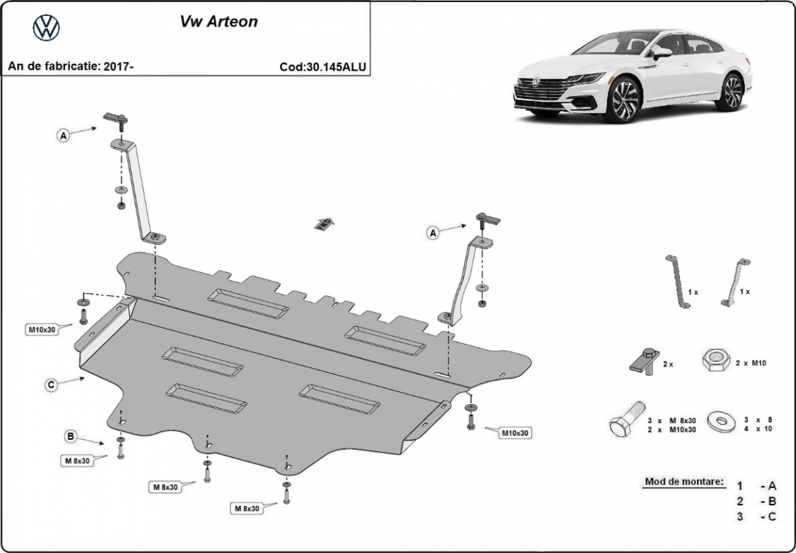 La piastra paramotore di Alluminio è nuova e si adatta perfettamente a tutte le versioni di VW Arteon prodotte tra il 2017 e il 2026. É fatto di lamiera d'Alluminio di 3mm. Gli scudi sono in alluminio, ma i supporti di fissaggio sono in acciaio. Bulloni, dadi, rondelle e tutti gli accessori allegati Ogni piastra è resistente alla corrosione ed è ricoperto di vernice in polvere. Le piastre di protezione del motore sono attrezzati di coppie saldate per la miglior resistenza alle forze exteriori. |