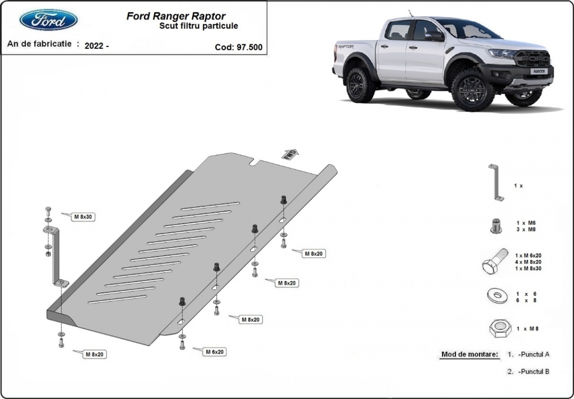 Protezione di acciaio per DPF Ford Ranger Raptor (2020-2023)