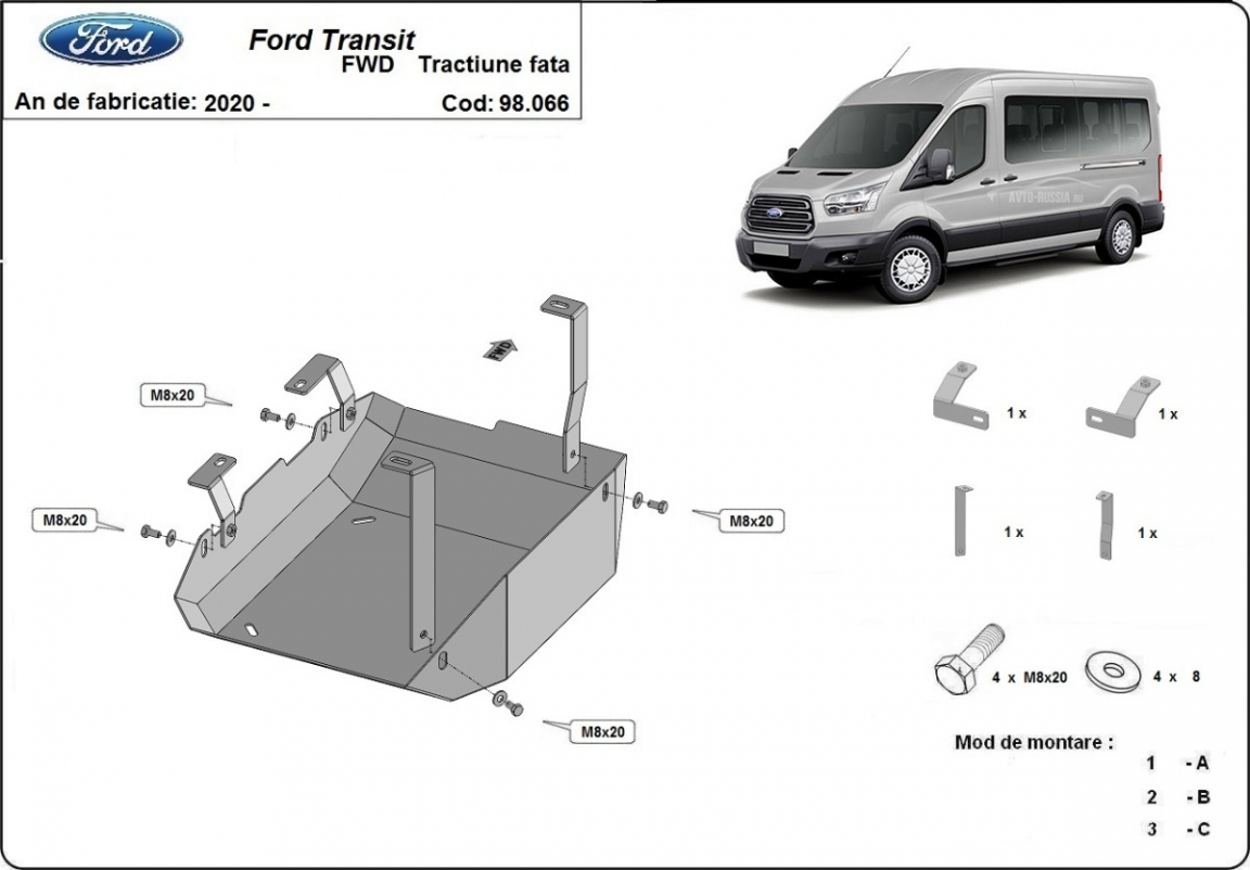 Piastra paramotore di acciaio Ford Transit - FWD