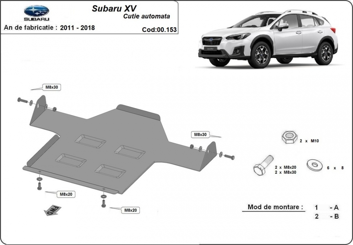 La piastra paramotore di Acciaio è nuova e si adatta perfettamente a tutte le versioni di Subaru XV prodotte tra il 2011 e il 2018. É fatto di lamiera d'Acciaio di 2mm. Bulloni, dadi, rondelle e tutti gli accessori allegati Ogni piastra è resistente alla corrosione ed è ricoperto di vernice in polvere. Le piastre di protezione del motore sono attrezzati di coppie saldate per la miglior resistenza alle forze exteriori. |