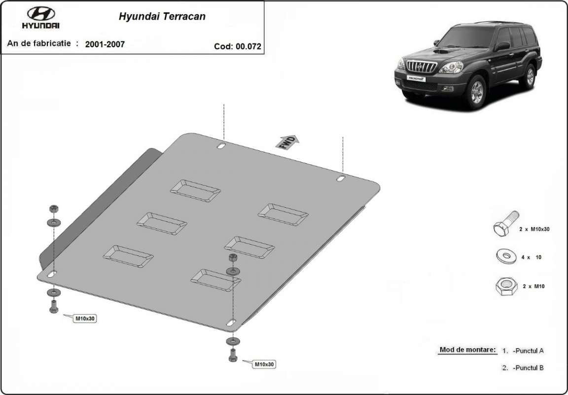 Protezione di acciaio per il cambio Hyundai Terracan (2001-2007)