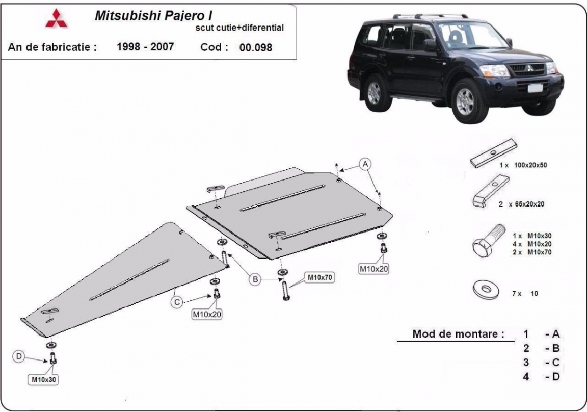 La piastra paramotore di Acciaio è nuova e si adatta perfettamente alla Mitsubishi Pajero Sport 1, con le seguenti versioni motore / trazione: - prodotte tra il 1998 e il 2007. É fatto di lamiera d'Acciaio di 3mm. Bulloni, dadi, rondelle e tutti gli accessori allegati Ogni piastra è resistente alla corrosione ed è ricoperto di vernice in polvere. Le piastre di protezione del motore sono attrezzati di coppie saldate per la miglior resistenza alle forze exteriori. |